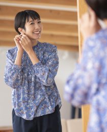 花柄シャーリングの春らしい上品ブラウス