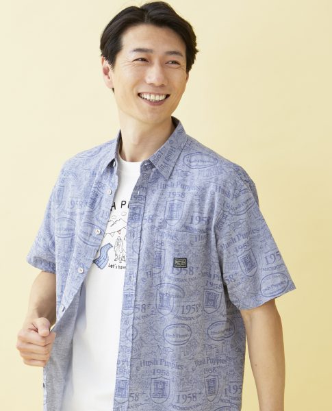 綿麻総柄ジャガードシャツ