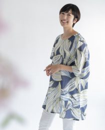 綿麻大花柄チュニックシャツ