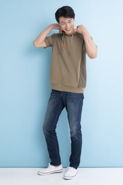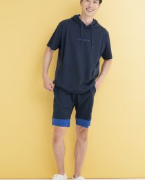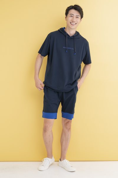 ソフトな風合いの半袖パーカーは、同素材のショートパンツと!
