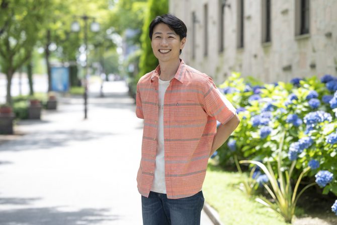 メンズのシャツも麻混素材。シャリ感があって涼し気です!
