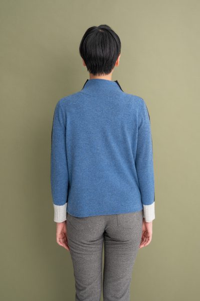 カシミヤ混刻み衿ニット