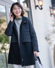 デザインにこだわった異素材切替コート!色見を統一してあるので、すっきりと上品な雰囲気です。