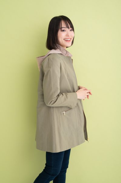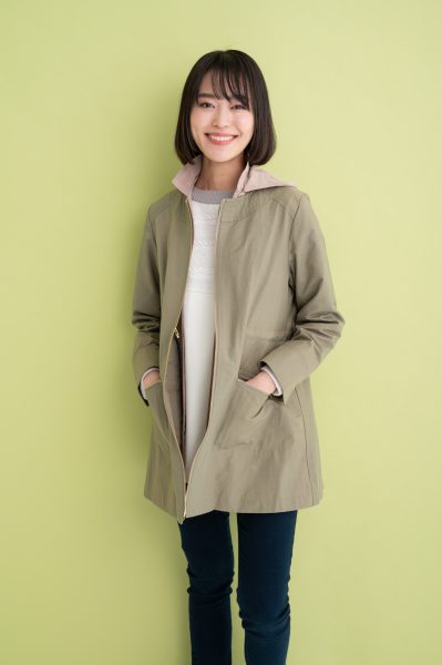 コートはハリのある綿混素材で、カジュアルにもキレイめにも着回しやすいデザインです!