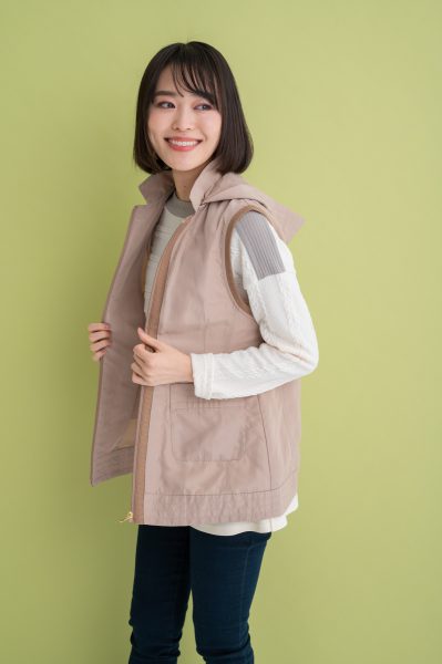 インナーベストの開け閉めだけでも雰囲気が変わり、コーデが楽しめます✨