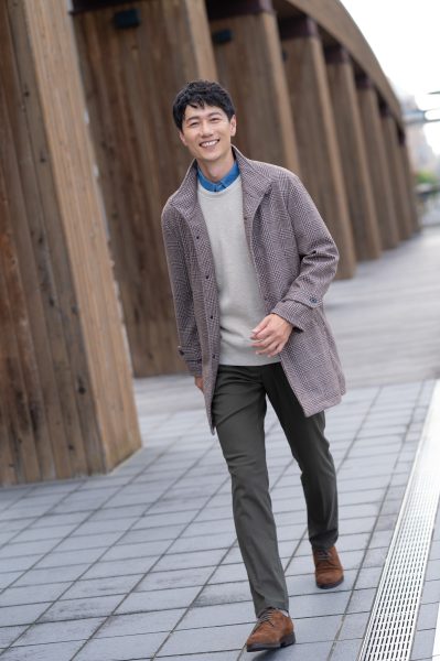 肌寒い日はシャツ+トレーナーのコーデに合わせても しっかり引き締まります!