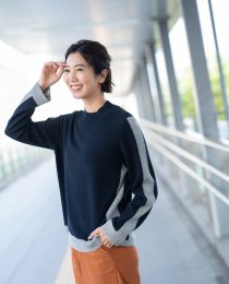 インナーのハイネックニット。実はメリハリのある配色リブでスタイルアップが叶います(*^^*)