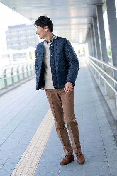【Vol,179】ノーカラーのキルトブルゾンで着こなしをアップデート
