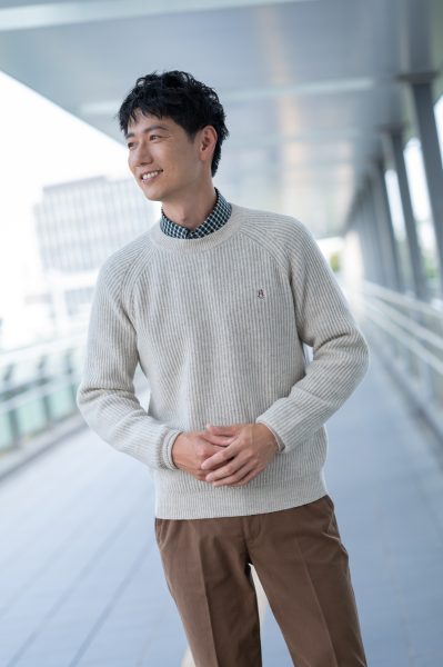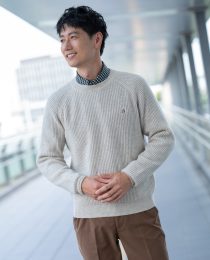 ニットに合わせたシャツの衿部分もしっかりと見えるので、