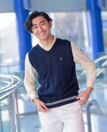 インナーに着たベストはアンサンブル。前後異素材で、コーデに悩まず可愛い着こなしが叶うアイテムです!