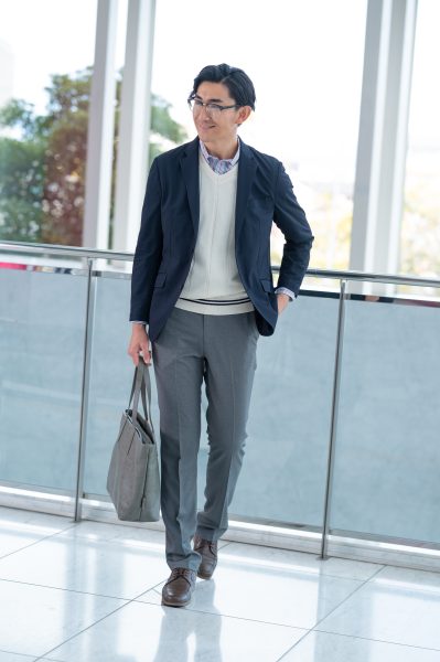 ジャケットを羽織って、カジュアルからお仕事まで幅広く使えるスタイルに!