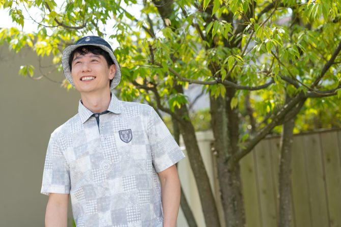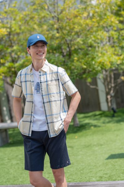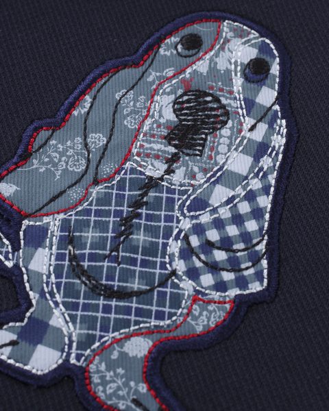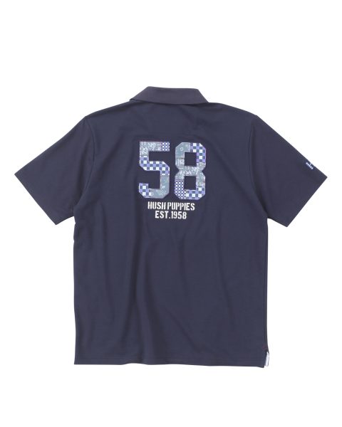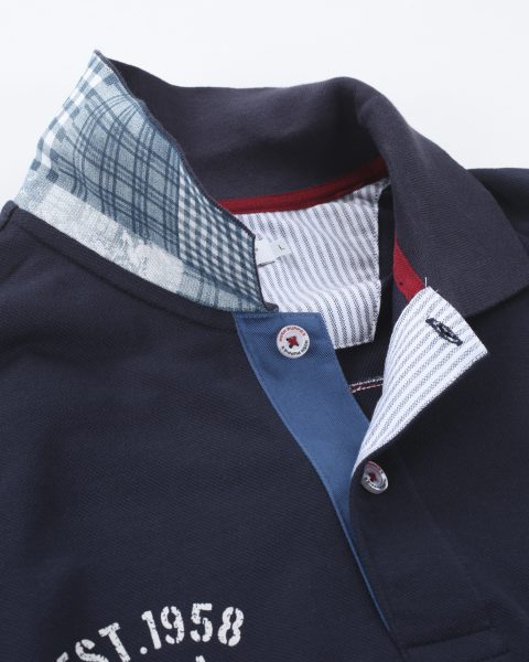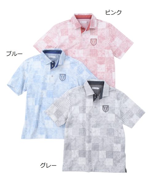 パッチワークモチーフを施したデザインポロシャツ。