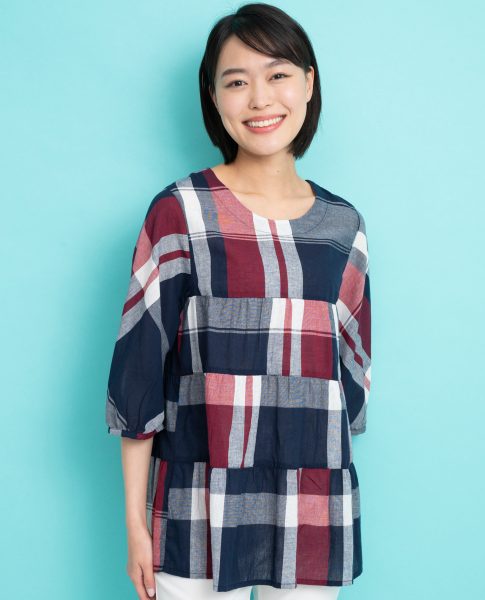 先染め格子ティアードチュニック