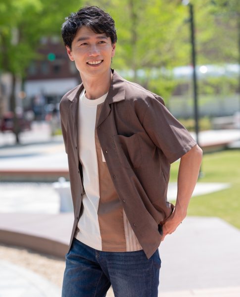 リラクシーな雰囲気のオープンカラーシャツ。