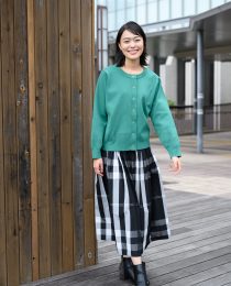 スカートは独特のハリ感ときれいなシルエットがキープされるメモリー生地がポイント!