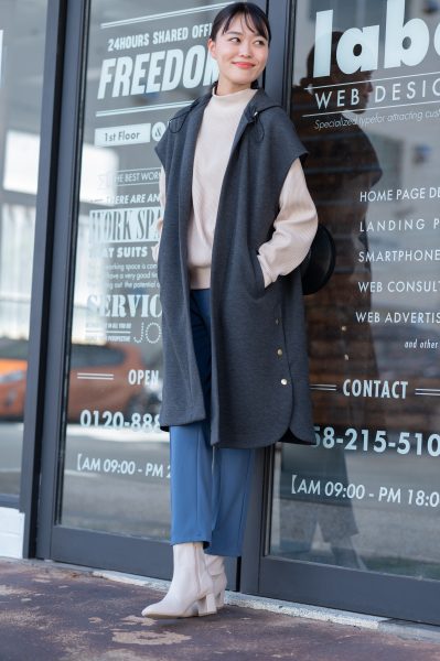 ロング丈なら大人カッコいいイメージに!秋コーデはジレから始めるのもオススメです。