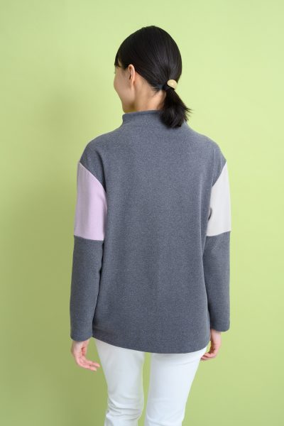 アシンメトリーな切り替えが目を惹く配色で、冬でも明るい気分になれる一枚です!