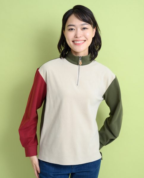 もちもちカットソーハーフZIPプルオーバー