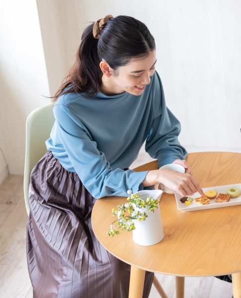ミップ風の生地感が嬉しい”もちもち”素材シリーズ。丁寧に毛羽立ちを加えたカットソー生地で着心地◎