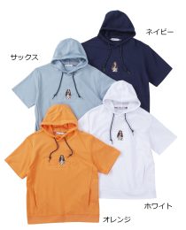 インナーにはネイビーの半袖パーカーを!