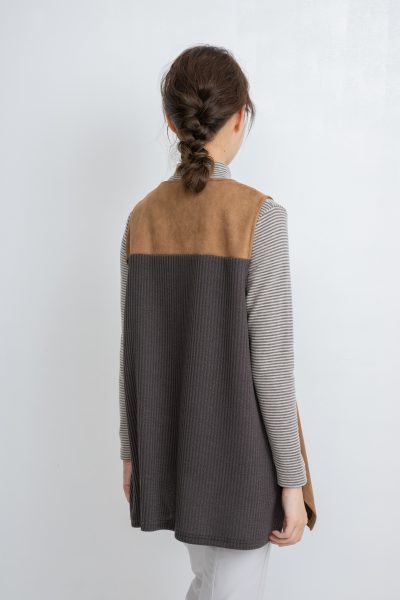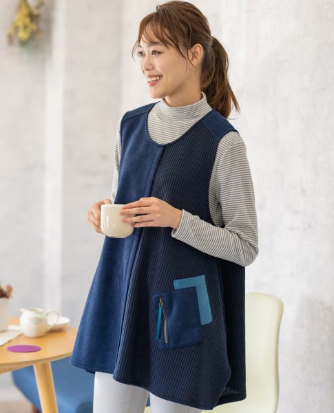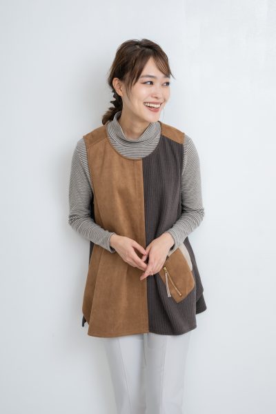 上品で滑らかな質感のスエード調と、カジュアルなリブのドッキングが、秋冬の季節にぴったりの一枚!