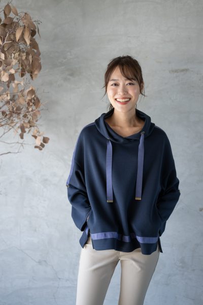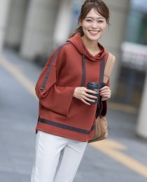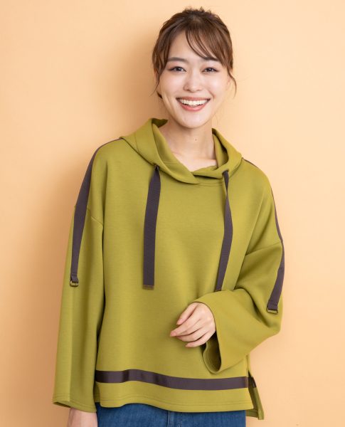 テープ使いがオシャレで目を引くプルオーバー。4色展開も嬉しいポイントです✨