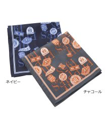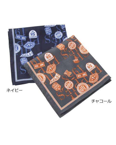 ロゴワッペン風のプリントが施された日本製ハンカチ。