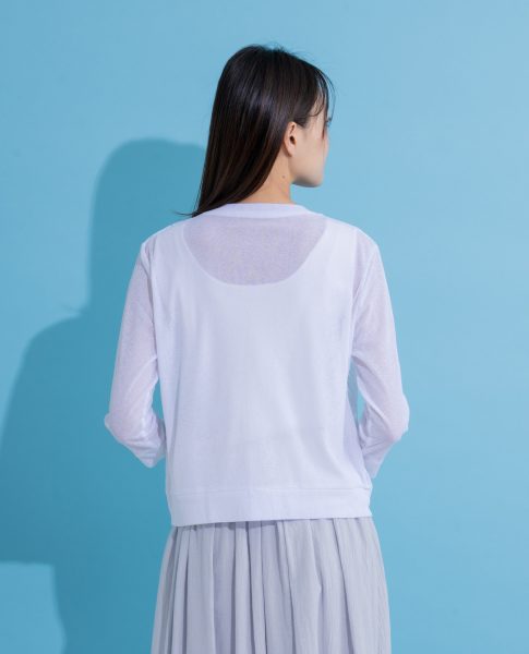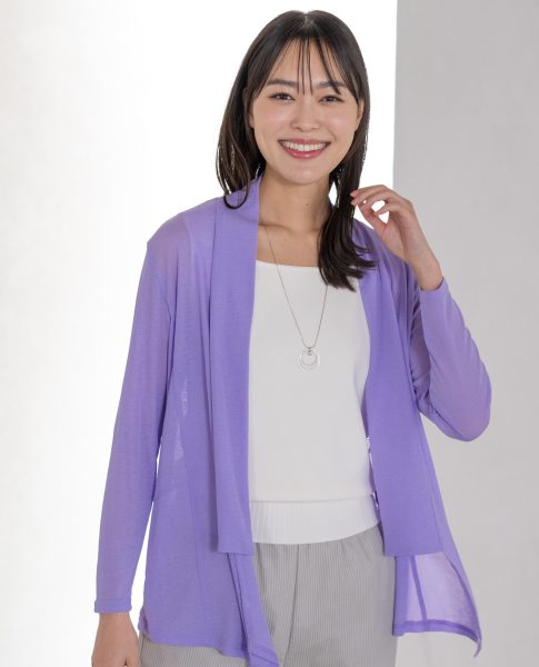 シャリ感のある梨地生地を使用したカーディガン。ドレープ感が綺麗なトッパータイプです!
