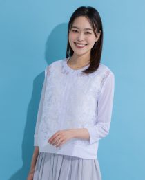 前身頃に花柄レースをあしらったオーガンジー生地を使用しました。