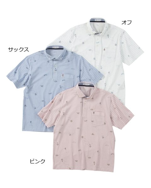 サッカーストライプPT ボタンダウン共襟ポロシャツ