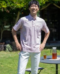 表面感のあるサッカー生地を使用。ボタンダウンデザインが、カジュアル過ぎず上品な印象をプラスします♪