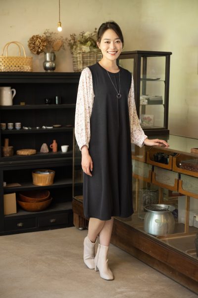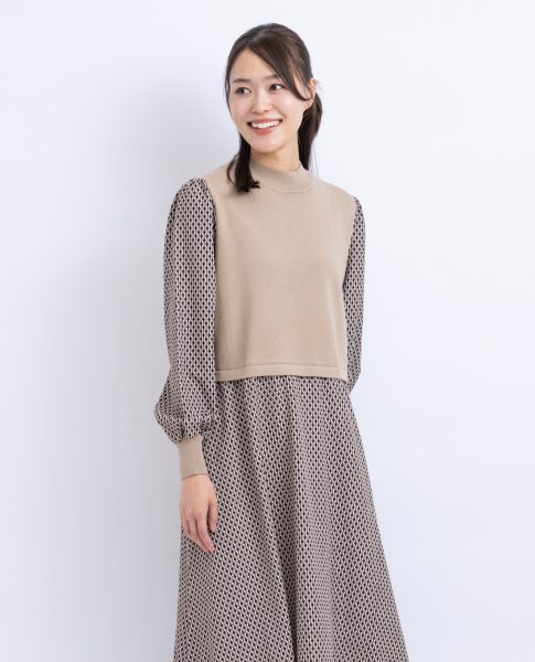 こちらは柄物ワンピースにベストを重ねたようなデザイン♪