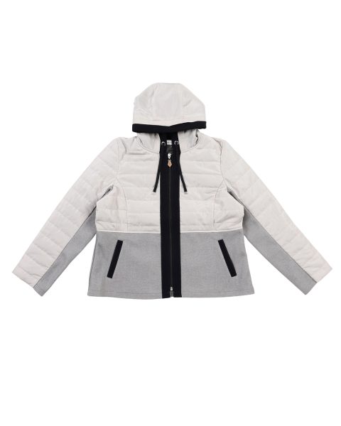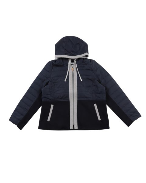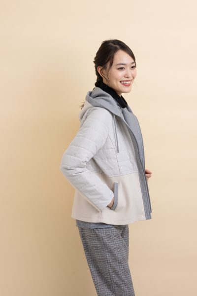 中わたのキルトジャケットにフェイクウールを縦にドッキングした、”ほっこり見えない”ジャケット。