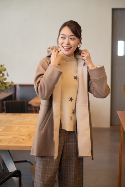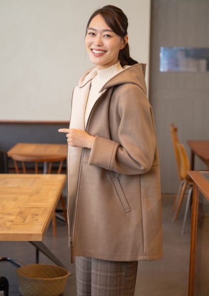 しっかり暖かさがありながら、ダウンのようなボリュームはなく、すっきりと着こなせます。