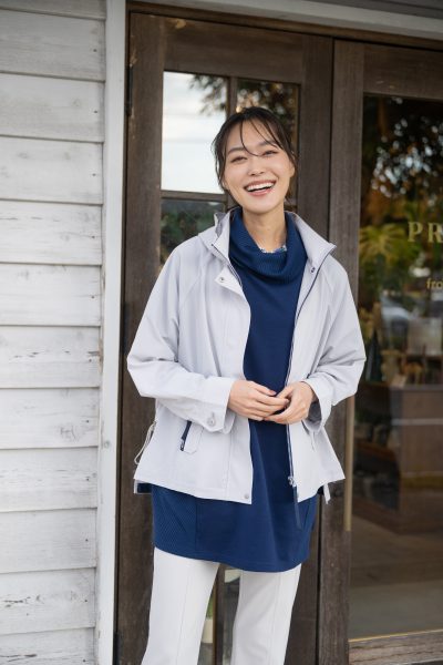 レディスはグレージュのブルゾンでやわらかく上品な印象に仕上げました。