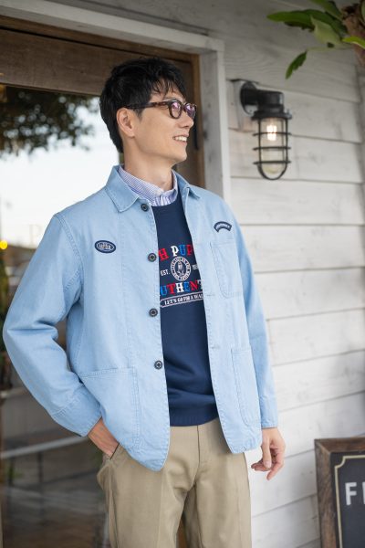 適度な生地厚のインディゴカバーオール。シャツとジャケットの中間のような感覚です◎