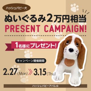 ハッシュパピー犬のぬいぐるみ(2万円相当)を1名様にプレゼント!!