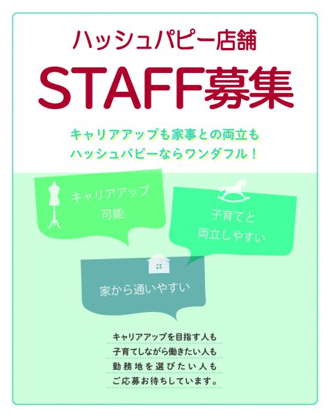 | 仕事 | お客様の接客・販売・ディスプレイ等のお仕事です。 ※商品知識や接客マナーなどの研修あり ※希望者にはファッションアドバイザーの研修もありますのでスキルUPできます |