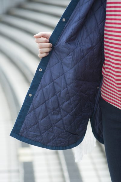 裏地はつるつるとしたキルティング素材。重ね着もしやすく、暖かいのがポイント。