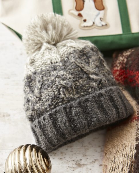 冬の定番小物のポンポンニット帽。グラデーションカラーのボーダーがシックでおしゃれです。カジュアルスタイルの仕上げに、こなれ感をプラス!