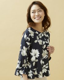 インナーに花柄を合わせて、かっこ良さと女性らしさを兼ね備えたコーデです。