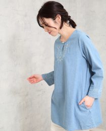 薄手のデニム生地を使用したプルオーバータイプのチュニック。
