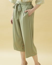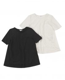 パンツスタイルでも刺繍レースのトップスと合わせれば女性らしい華やかコーデ。タックインできちんと感と動きやすさをしっかりと!