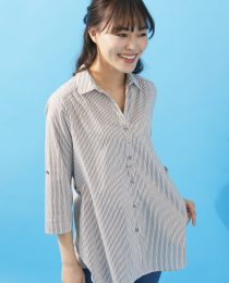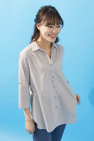 細ストライプで上品に着こなすシャツチュニック