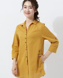 綿麻素材を使用したナチュラルな雰囲気のシャツチュニック。スキッパー衿ですっきりとした印象に。アースカラーとリネンの風合いで優しいスタイリングが叶います。