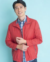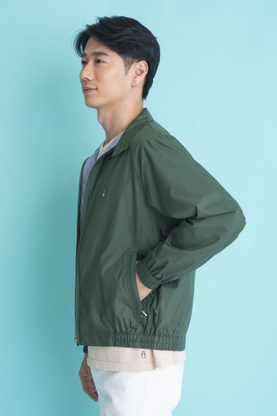 サラッとしたポリエステル素材で気軽に羽織れるドッグイヤーブルゾン。