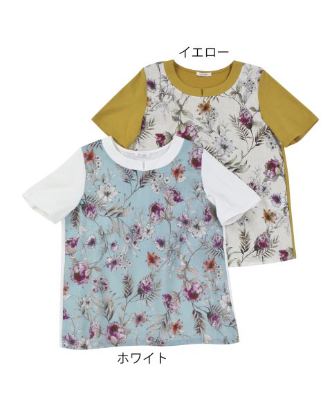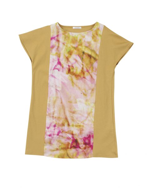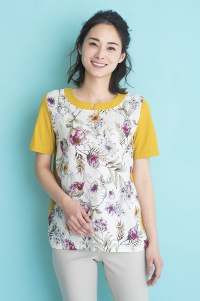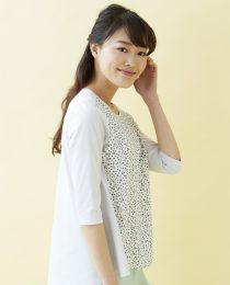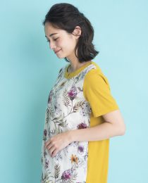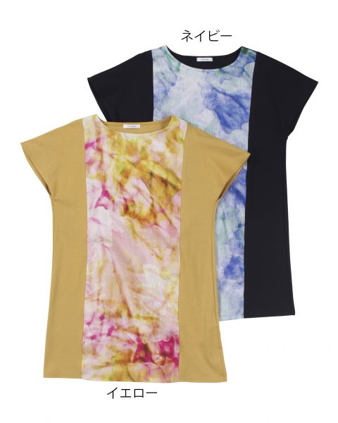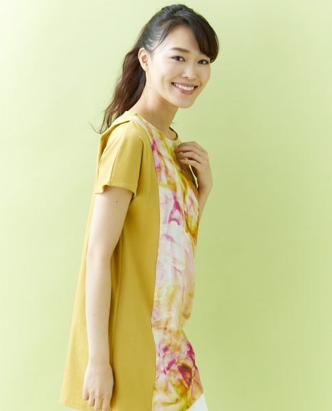 前身に水彩画のようなプリントを施した切替チュニック。