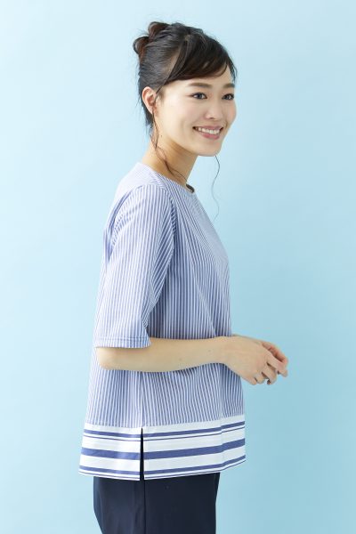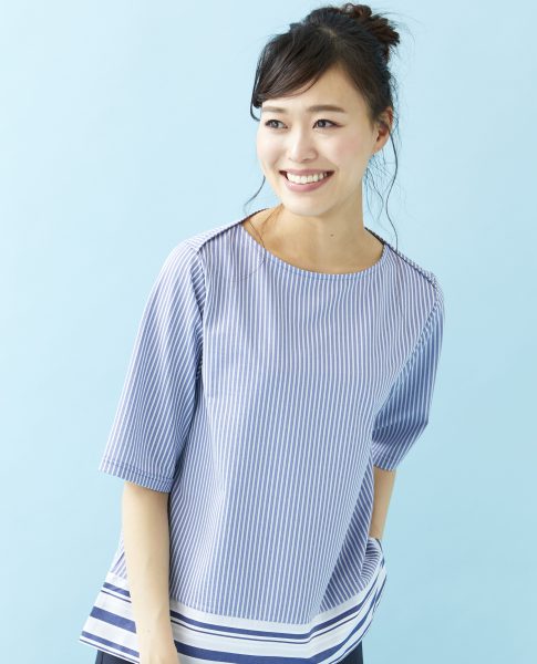 ストライプとボーダーの切替が爽やかなプルオーバー。