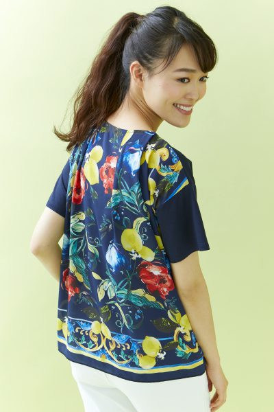 後ろ姿にリゾート感が漂うトロピカルデザインのプルオーバー